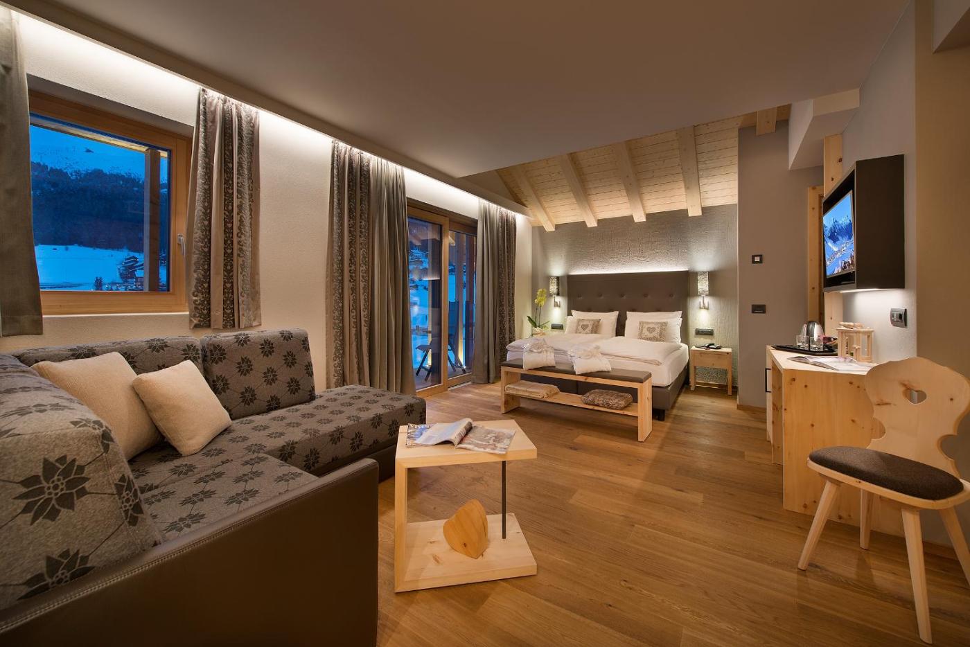 Wszystkie pokoje w hotelu Roberta Alpine są nowocześnie urządzone w górskim stylu i wyposażone w meble z naturalnego drewna. Podłogi wyłożone są drewnem. Wszystkie pokoje dysponują balkonem oraz w pełni wyposażoną łazienką z prysznicem. Do dyspozycji Gości jest telewizor z płaskim ekranem.